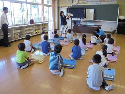 1年生が、鍵盤ハーモニカ講習を受けました。