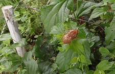 ふと目をやると、校庭のあちらこちらに蝉の抜け殻がありました。1年生が育てている百日草の葉にもありました。