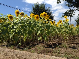 台風一過の青空の下、ヒマワリはとてもきれいです。