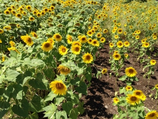 たくさんの花は揃って東の方角を見ています。
