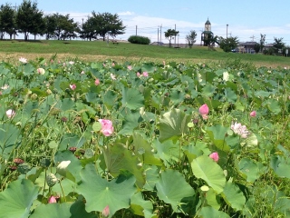 栄一記念館の北の池、蓮が美しく咲いています。