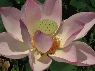 蓮の花をアップで写しました。奥には蓮の実があります。