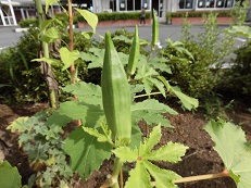 ⑥ 黄色の花の後にロケットの形の実 がたくさんできました。