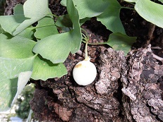⑦ 大きな木に白くて丸いピンポン玉の大きさの実を見つけました。
