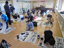 1年生と2年生はフェルトペンで、3年生以上は毛筆で書き初めの練習をしています。