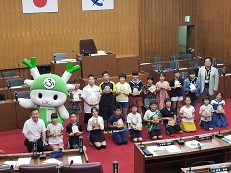 閉会後は、市長さん、市議会議長さん、ふっかちゃんと一緒に、記念撮影をしました。