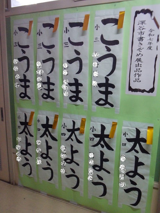 3年生以上の各学年の代表者の作品は、職員室前に掲示してありますので、