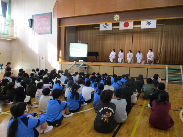 本日は朝の給食集会で給食委員さんが、