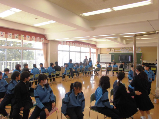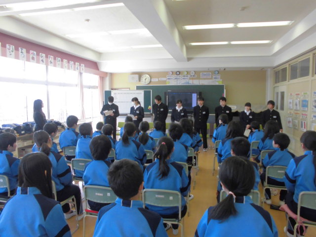 先日、豊里中学校の生徒会役員が小学校へ来校し、