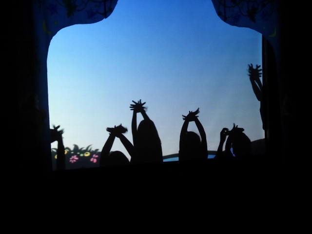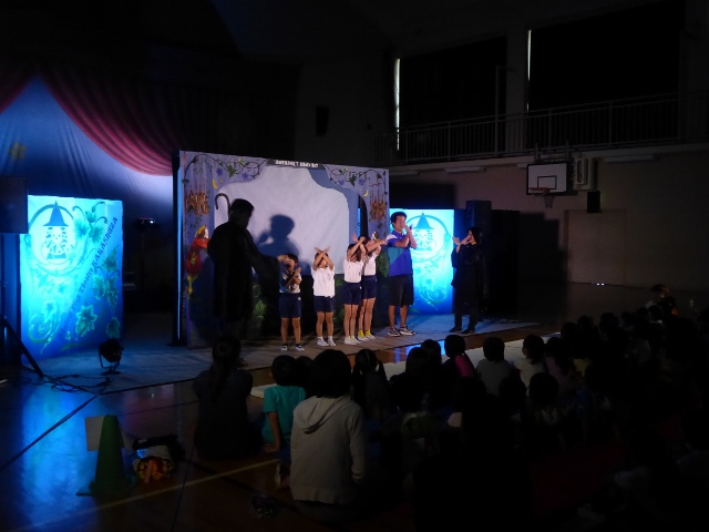これから演劇鑑賞会を始めます。 まねしてやってみましょう。