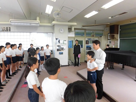 子ども達の笑顔があふれる学校で、子どもたちとともに「夢と希望」を語り合い、その夢や希望に向かって進む確かな学力や体力、人としての誠実な心「まごころと思いやり」を育てていきたいと思います。