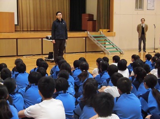 12月の全校朝会がありました。2016年しめくくりの12月です。良い姿勢で、しっかり話を聞くことができました。