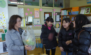 後にご優待されるため、子供達を代表して5年生から感謝の花束が