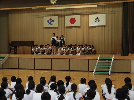 1~5年生までの児童が、6年生にエールを送り、
