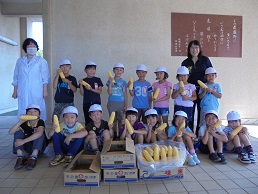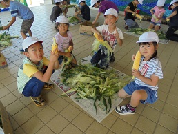 25日(月)に、1年生がとうもろこしの皮むきをしました絵文字:笑顔