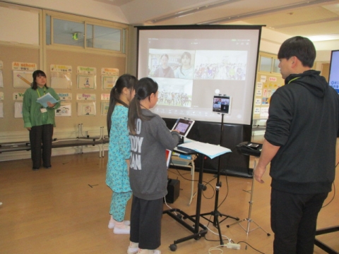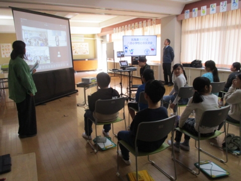 4年生が、北海道清水町にある清水小学校と御影小学校とオンライン交流を行いました。