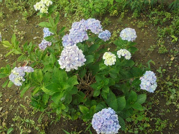 プール近くのあじさいです。花びらのように見えるものは「ガク」、花だと思われている部分は装飾花(そうしょくか)といいます。八基小は、一年中たくさん花が咲いておりたいへん恵まれた学習環境です。