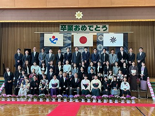 1・2・3・6年生が下校した後、4・5年生と職員で卒業式の準備。