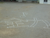 音楽主任の先生が、校庭に「全力」の文字を書きました。