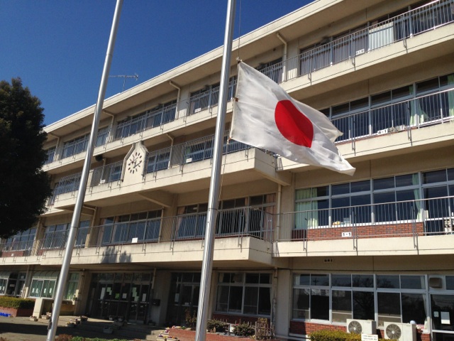 八基小学校でも、半旗を掲げ、弔意を表しました。