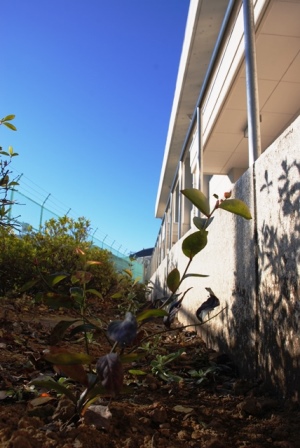 校歌制定100周年記念のブルーベリーの苗木を八基小学校体育館の南側に植えました。