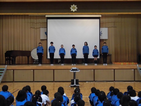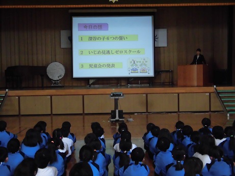 今朝の全校朝会では、校長先生から