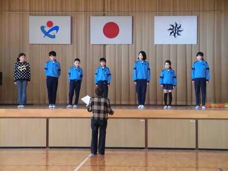 ↑ 全校児童の前で披露してくれました!