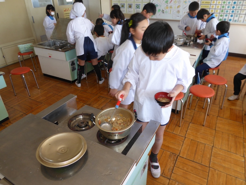 にぼうと作り体験 3年生 郷土の名物料理「にぼうと」を、3年生が「総合的な学習の時間」の学習で体験しました。