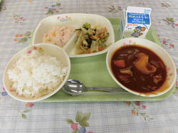 ハヤシライスは、市販のルウを使用しましたが、おいしくなったのは隠し味と調理員さんの腕です!みなさんは、いくつ隠し味を見つけることができたでしょうか?