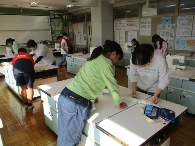 5年生はランチョンマット、6年生はトートバッグを作っています。