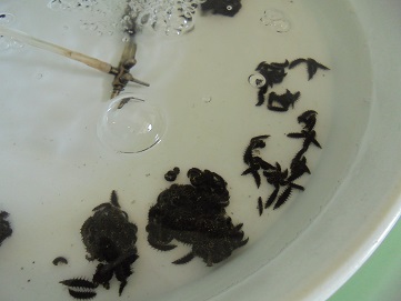 水槽の隅に集まって
