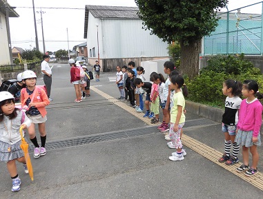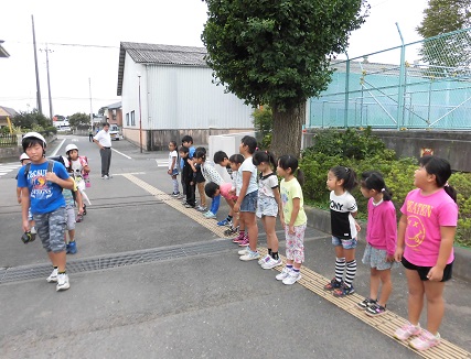 八基小学校では、朝の登校時に