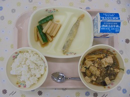 毎回挨拶をしっかりして、給食室にも取りに来ています。身支度・姿勢もバッチリです!