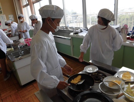 6年生が家庭科の授業で調理実習を行いました。