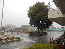 ぽかぽかの桜満開の風景                寒々した雪の風景