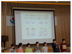 昨日20日(金)の第6校時の時間に、クラブ発表会がありました。来年度からクラブに加入する現3年生が参観しました。今日の発表を見て、来年度どのクラブをやりたいかを考え、希望をとり実施されます。発表する側の児童は、来年度自分たちのクラブに入ってほしいという気持ちをもって一生懸命練習しての発表でした。運動クラブは、普段の活動をグループごとに発表しました。手芸調理クラブは、パワーポイントを使って今までの活動を紹介しました。パソコンクラブもパワーポイントを使い自分たちが作成した作品の紹介しながら何ができるかを話していました。最後のバトンクラブは、音楽に合わせてバトン演技を披露しました。どのクラブも一生懸命やっており、見ている児童もしっかりした態度で臨めていました。