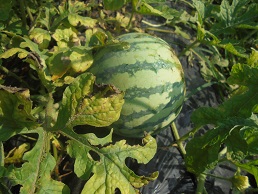 畑の西瓜や南瓜もすくすく育っています。藍もかわいい花をつけています。