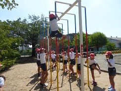 校庭の遊具広場の一角に、上り棒を設置していただきました。