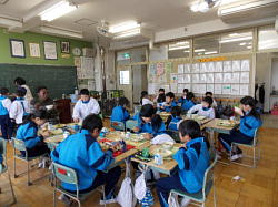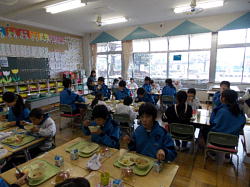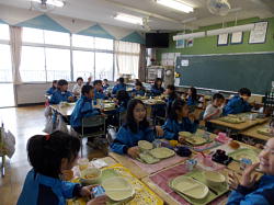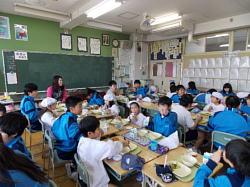 本日の給食は、給食週間の取り組みの一つとして、交歓給食を行いました。1年生と6年生、2年生と5年生、3年生と4年生でした。実施した教室を覗いてみると、いつもとどことなく雰囲気が違いました。どのクラスも楽しそうに食べている光景が見られました。6年生は、特に1年生の教室が懐かしく、また、自分の成長を感じられたのではないでしょうか。