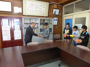 贈呈の後、児童会長が、