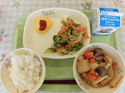 八基小学校のサラダは、調理員さんのこまめな温度管理と上手な茹で加減によりいつも美味しいサラダが出来上がります