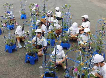 1年生が自分達で育てたアサガオの観察を