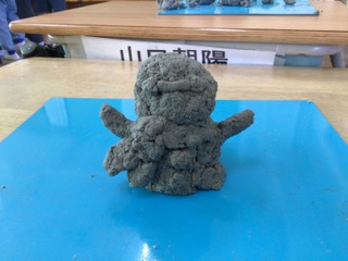 2年生が図工の時間に新聞紙粘土で作品を作っていました。