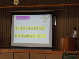 校長先生からは「きまりをまもること」「いじめ0スクール」についてのお話をいただきました。