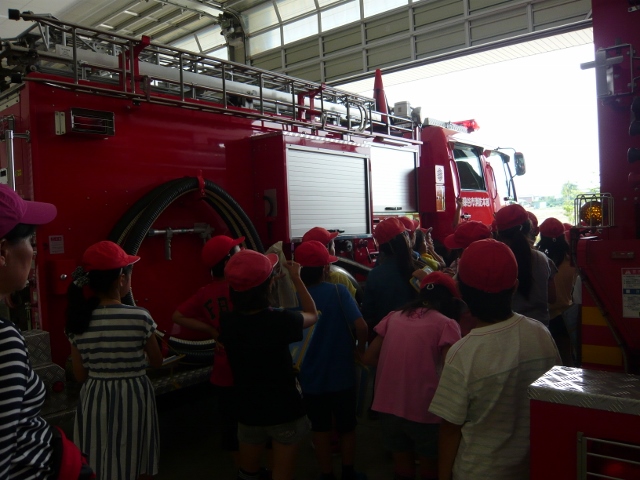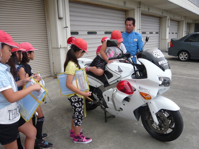 白バイに乗せていただいたり、緊急車両を間近で見せていただいたりして、子供達は嬉しそうに目を輝かせていました。
