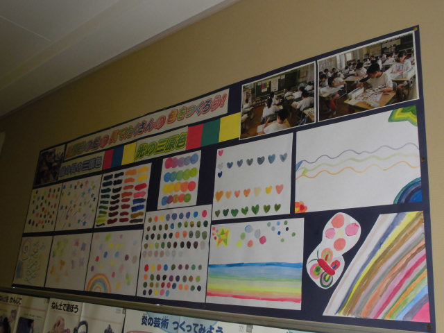 6年生が、3原色で きれいな色をつくり、模様も描きました。