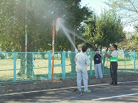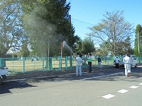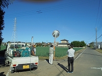 動噴を使い、カーブミラーを次々に清掃していきました。