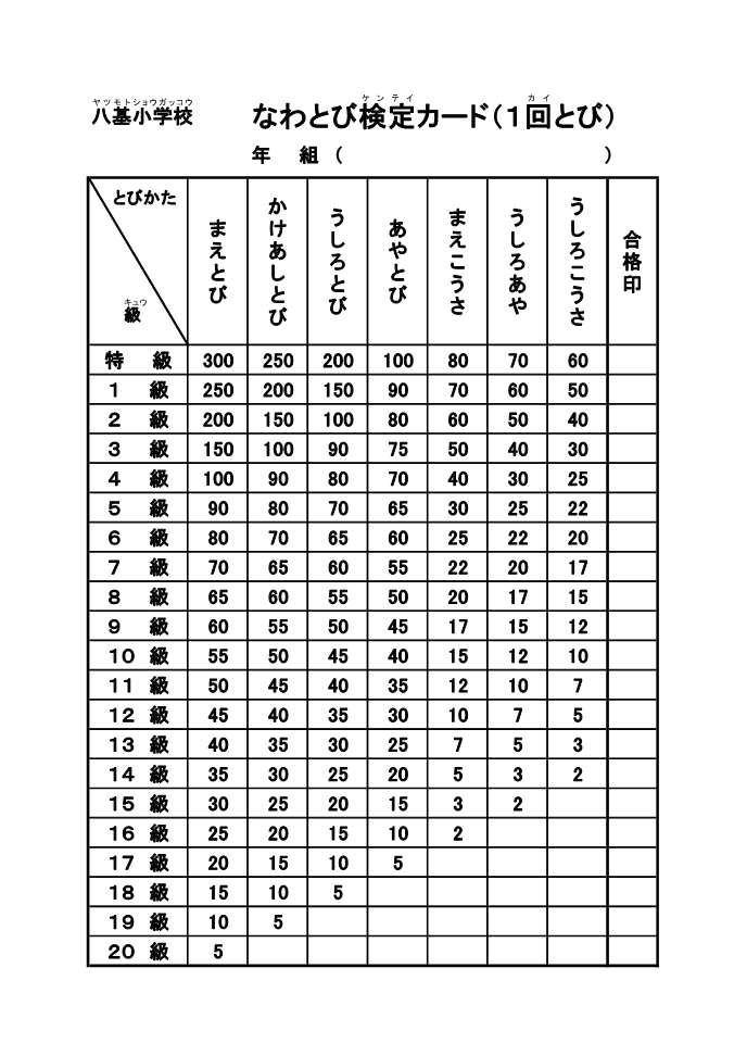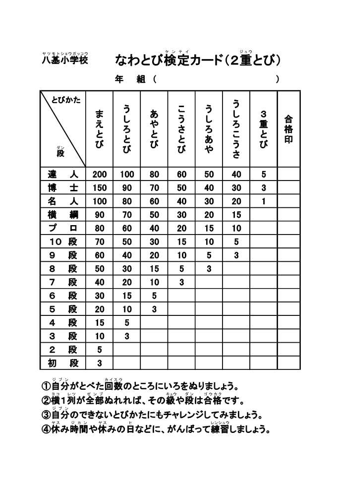 冬休みの課題でもある、なわとび検定カードを計画的に進めましょう。