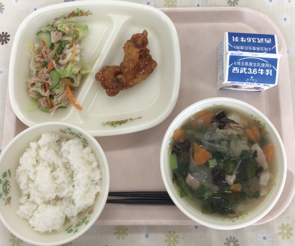 給食では、にんじん・玉ねぎ・キクラゲ・