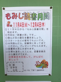 今回は「読書の旅」と題して、教科書に出てくる本・昔話し・外国のお話し・親子ふれあい読書など、自分の好きな本だけでなく色々なジャンルの本に触れる「読書週間」になっています。